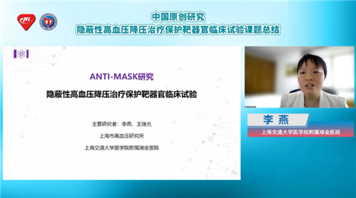 隱蔽性高血壓是一種特殊類型的高血壓,患者來院時偶測血壓數據可能不高,需要通過24小時動態(tài)血壓監(jiān)測或家庭血壓監(jiān)測來診斷。據國內眾多研究顯示,隱蔽性高血壓患者靶器官損傷和心血管事件發(fā)生風險較正常血壓者顯著增加,ANTI-MASK研究作為第一項探索隱蔽性高血壓患者降壓治療效果的臨床試驗,首次說明了降壓治療有利于隱蔽性高血壓患者的靶器官保護。為讓更多臨床醫(yī)生知曉隱蔽性高血壓危害,優(yōu)化隱蔽性高血壓患者治療策略,在第八屆中國血壓監(jiān)測學術會議期間,上海市高血壓研究所、上海交通大學醫(yī)學院附屬瑞金醫(yī)院李燕教授特帶來專題報告,解讀ANTI-MASK研究的試驗流程與試驗結果。